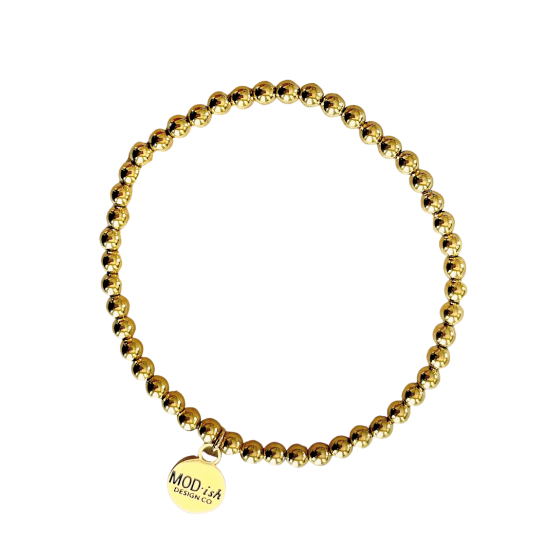 This 4mm gold beaded bracelet is the perfect dainty layer that pulls everything together. Subtle and lightweight it adds just the right amount of shine without overpowering your look, making it an everyday essential.